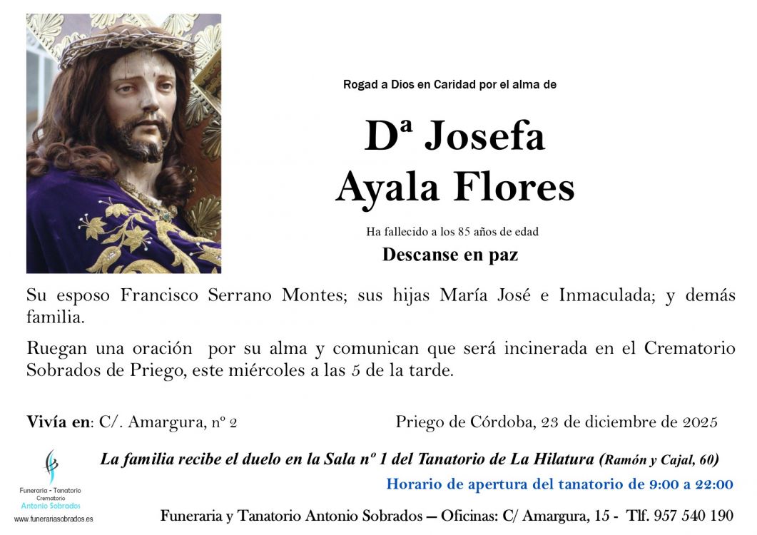 Entierro de Josefa Ayala Flores Que falleció el martes, 23 de diciembre de 2025 a los 85 años de edad. Sepelio miércoles, 24 de diciembre de 2025 a las 17:00 en